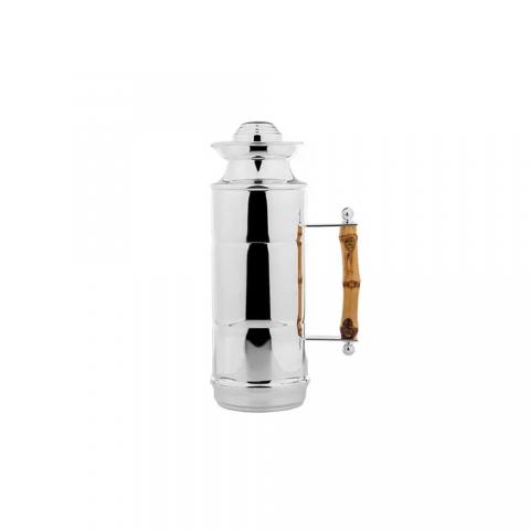 Garrafa Térmica em Prata com alça de bambu é clássica e compõe a mesa de chá e café ou a bandeja com extrema elegância.