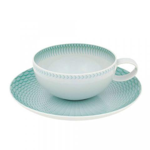 A sofisticação das formas e da decoração a platina contrastam com a delicadeza do relevo, finalizado com um toque de cor em degradé. Os pratos e as chávenas prescindem da platina, para uso no microondas. Contemporaneidade prática com pormenores de elegância e distinção
